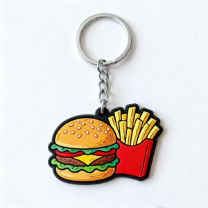 Cute Burger Fries Designed PVC Keychain